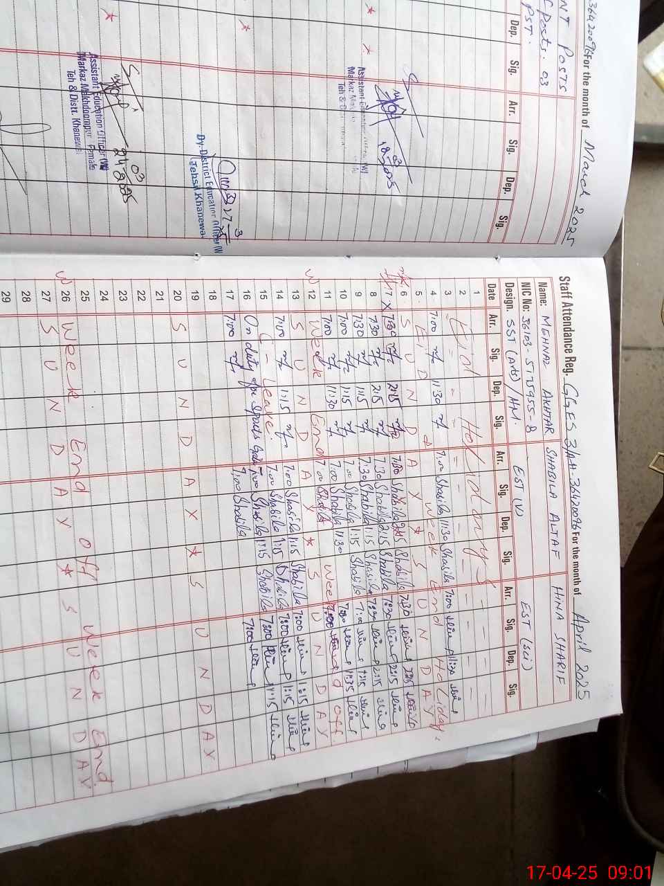 | CNIC | Full Name | Designation | R/C | Absence During Last Calender Month |