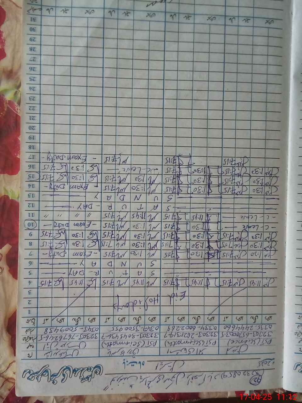 | 32**** | Sh**** Ab**** | 1 | 1 | 0 | 0 | 0 | 0 | 0 | 0 | 0 | 0 | 0 | Exam Duty |