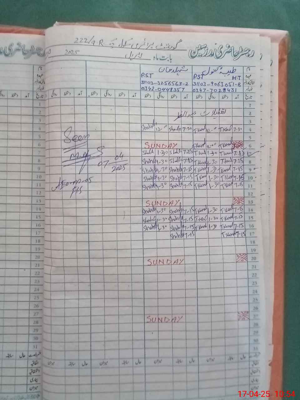 | Name: Ta**** Designation: (School Headmaster's/Headmistress's) PST Phone/Cell Number: 03**** |