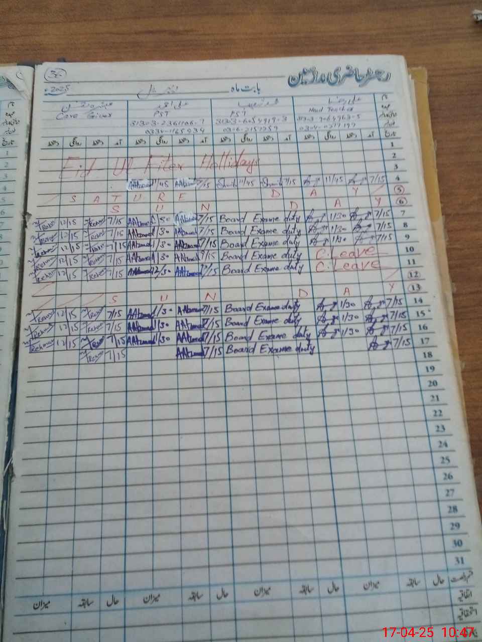 | 31**** | Mu**** Sh**** | PST | Regular | 0 | 0 | 0 | 0 | 0 | 0 | 0 | 0 | 0 | Exam Duty |