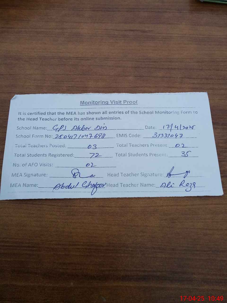 | EMIS Code: 31331047 | Name of School: GPS BASTI AKBAR DIN | |||
