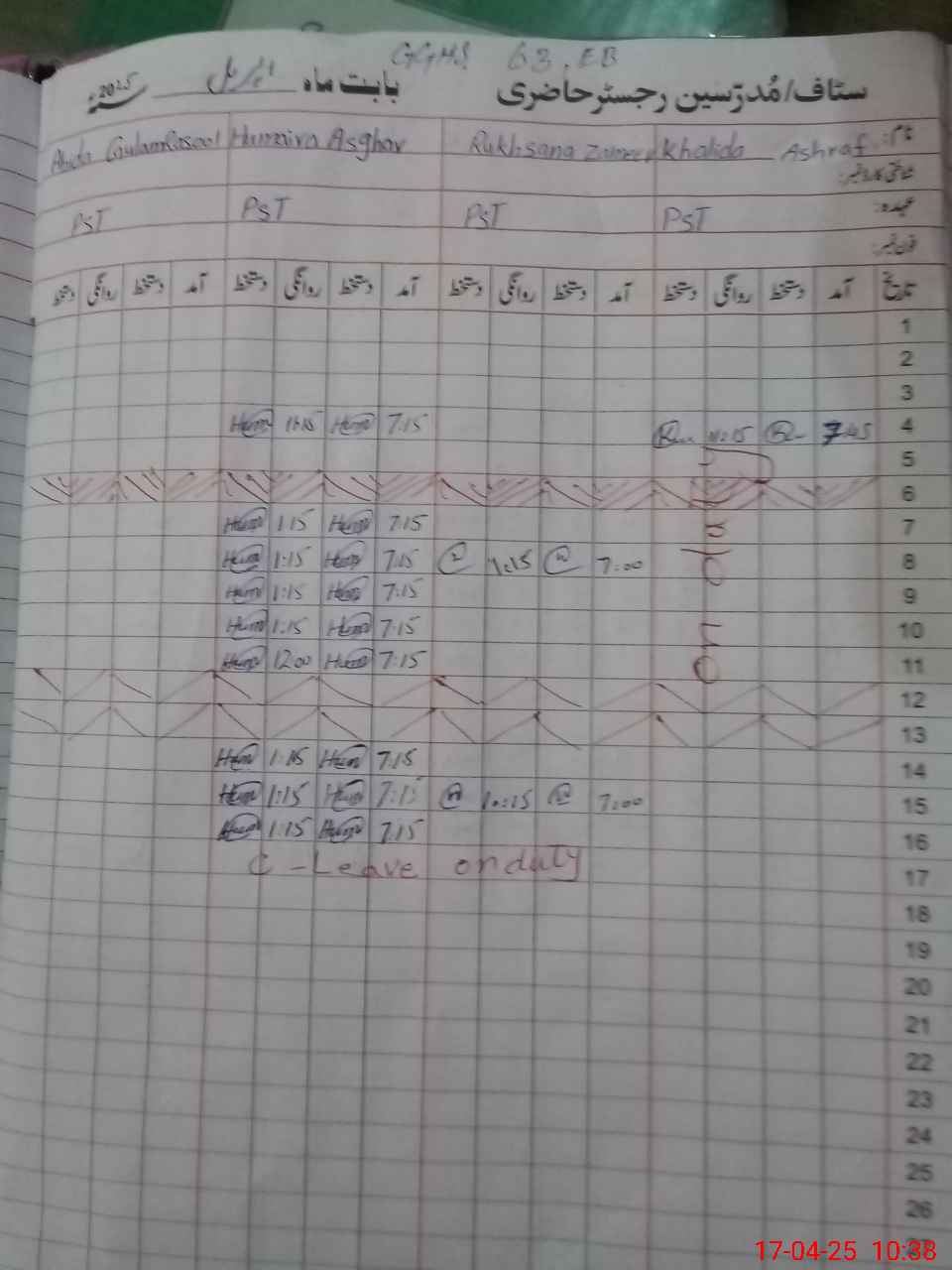 | 31**** | Kh**** As**** Ra**** | PST | Regular | 1 | 24 | 0 | 0 | 0 | 0 | 0 | 0 | 1 | Exam Duty |