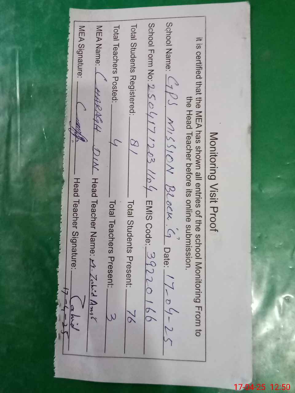 | EMIS Code: 39220166 | Name of School: GPS MISSION BLOCK G | |||