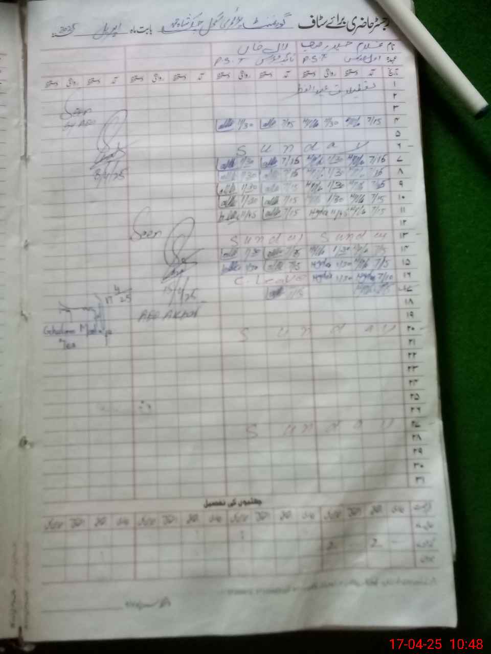 | CNIC | Full Name | Designation | R/C | Absence During Last Calender Month |
