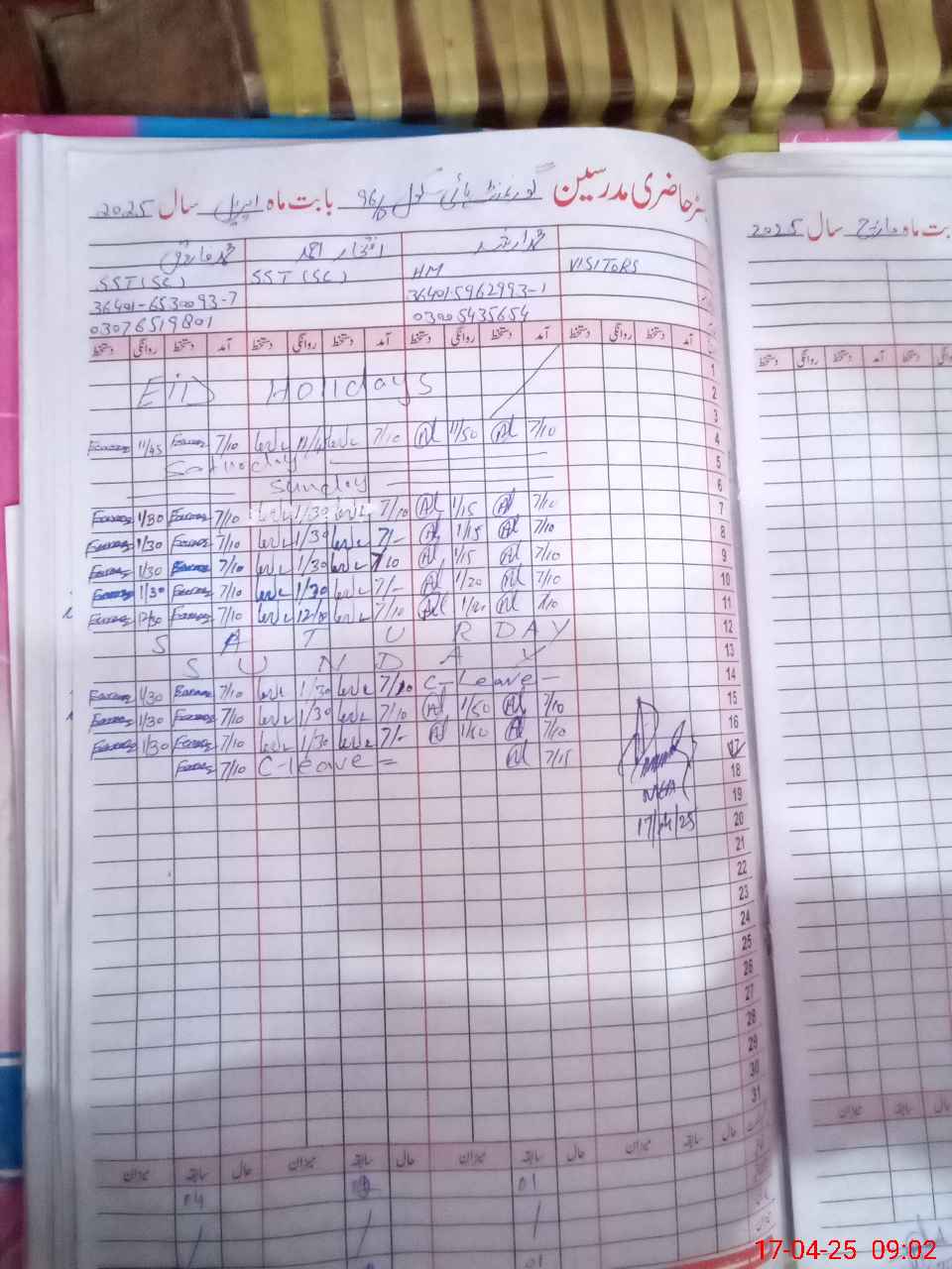 | Name: Mu**** Ar**** Designation: (School Headmaster's/Headmistress's) SST Phone/Cell Number: 03**** |