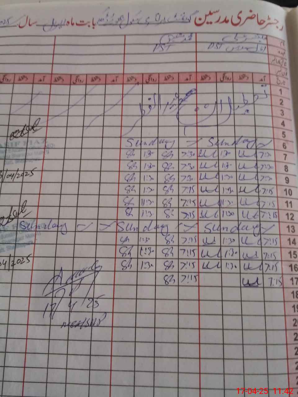 | CNIC | Full Name | Designation | R/C | Absence During Last Calender Month |