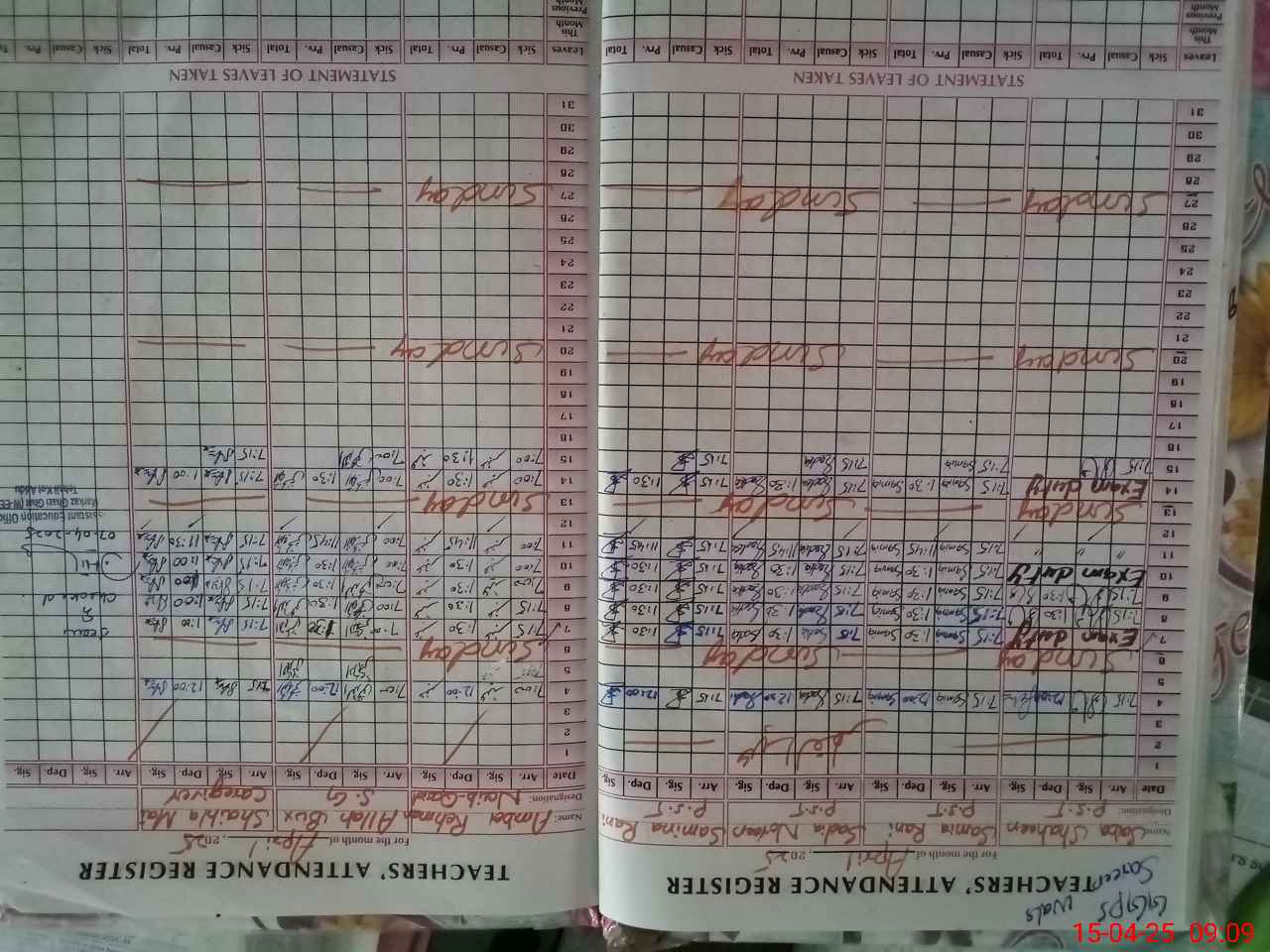 | CNIC | Full Name | Designation | R/C | Absence During Last Calender Month |