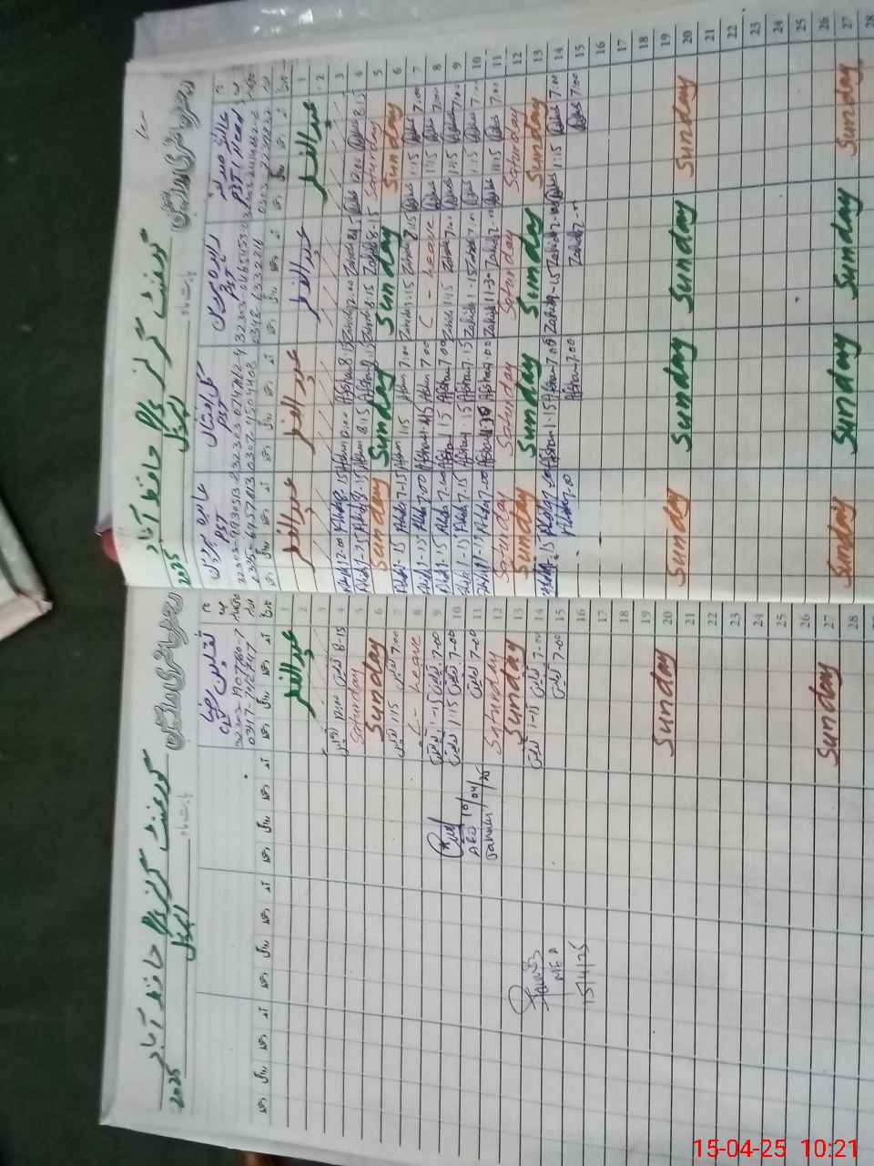 | CNIC | Full Name | Designation | R/C | Absence During Last Calender Month |