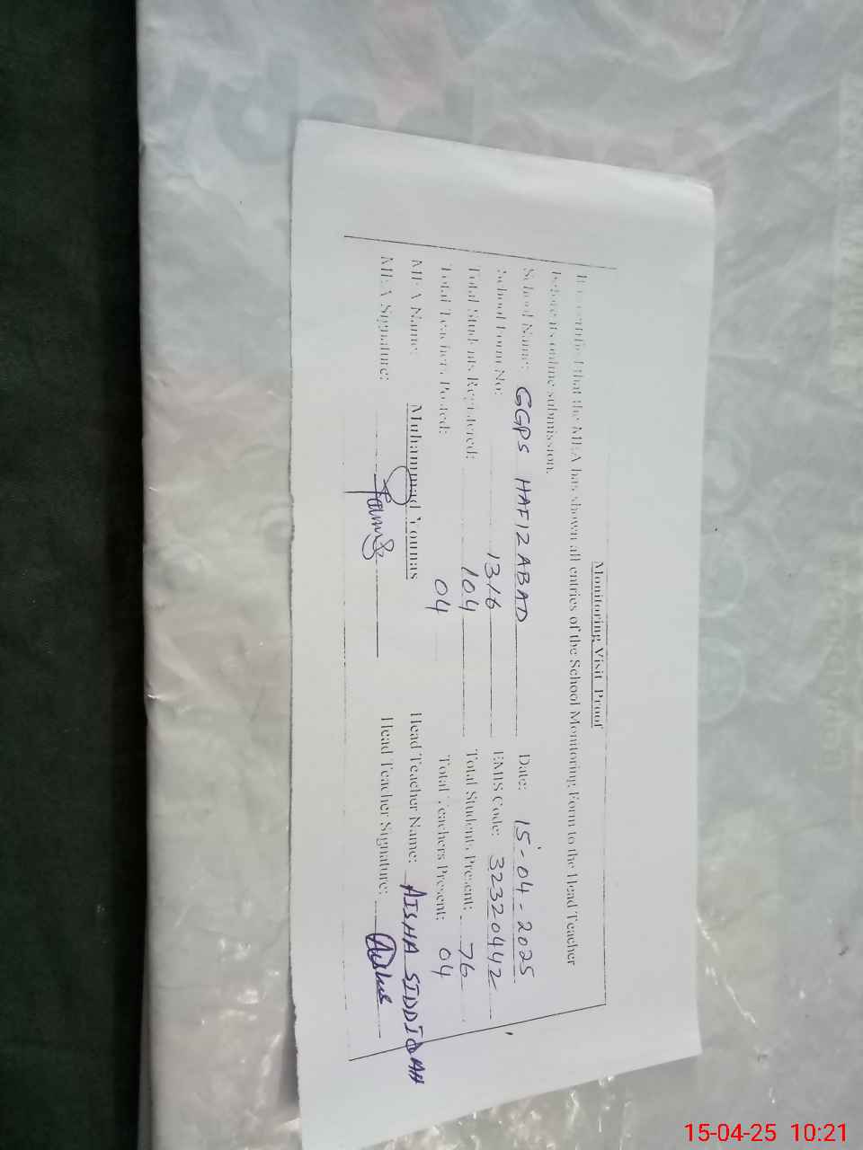 | EMIS Code: 32320442 | Name of School: GGPS HAFIZ ABAD | |||