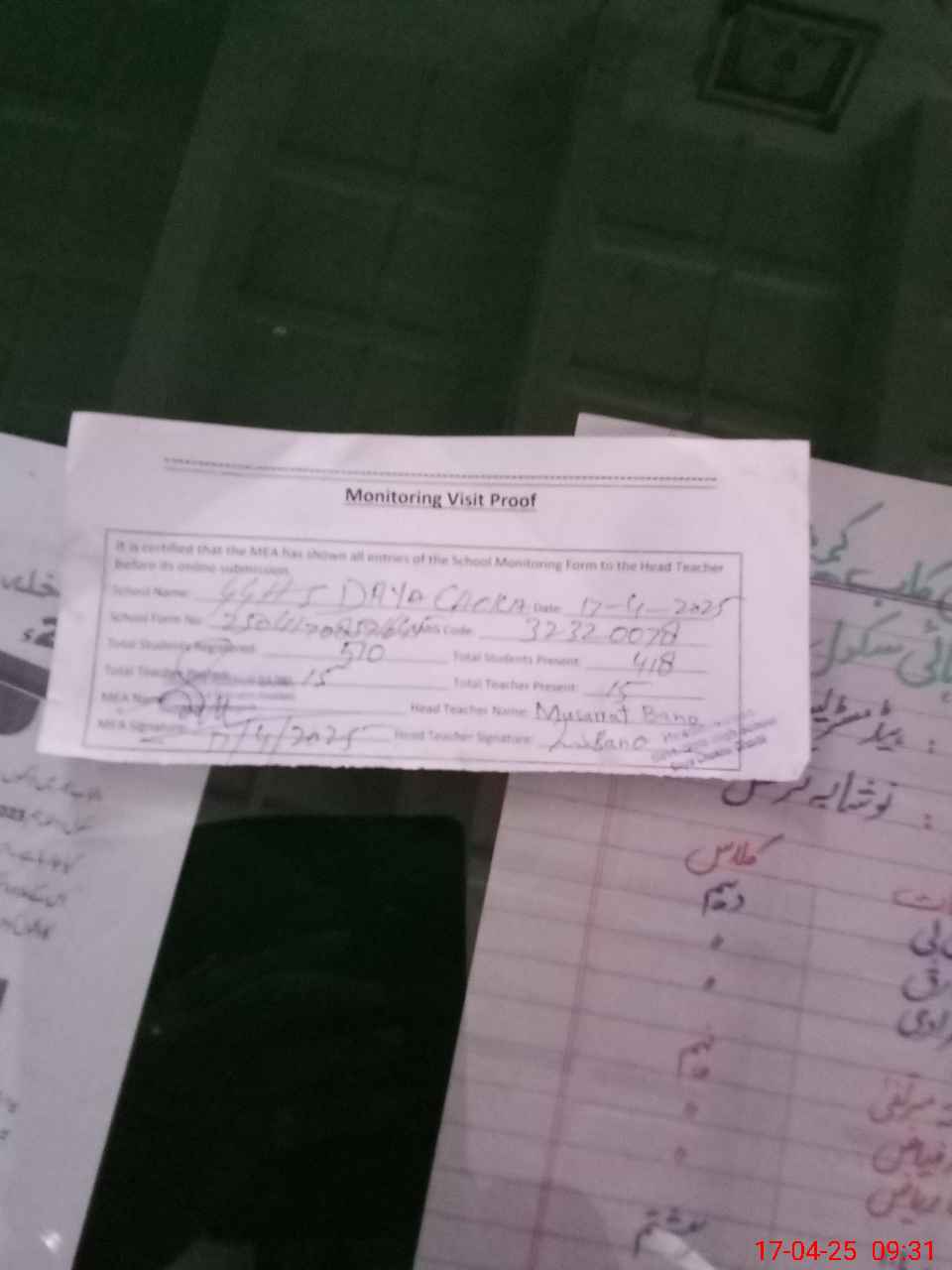 | EMIS Code: 32320078 | Name of School: GGHS DAYA CHOKHA | |||