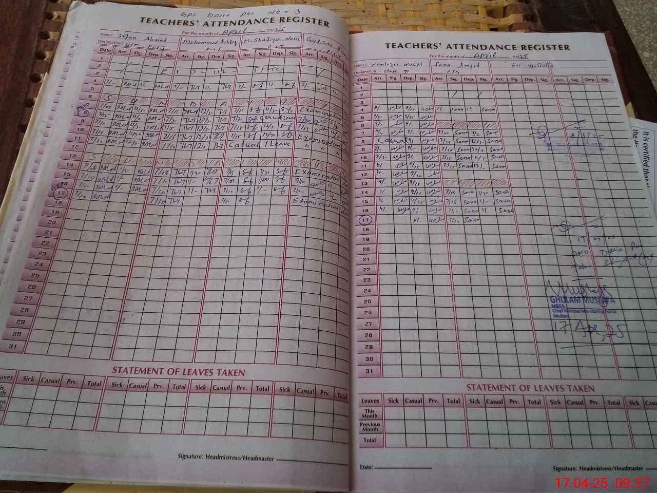 | Monitoring Date: 17-04-2025 | Start Time: 17-04-2025 09:14 AM | End Time: 17-04-2025 09:47 AM | Name of MEA: Gh**** Mu**** | |