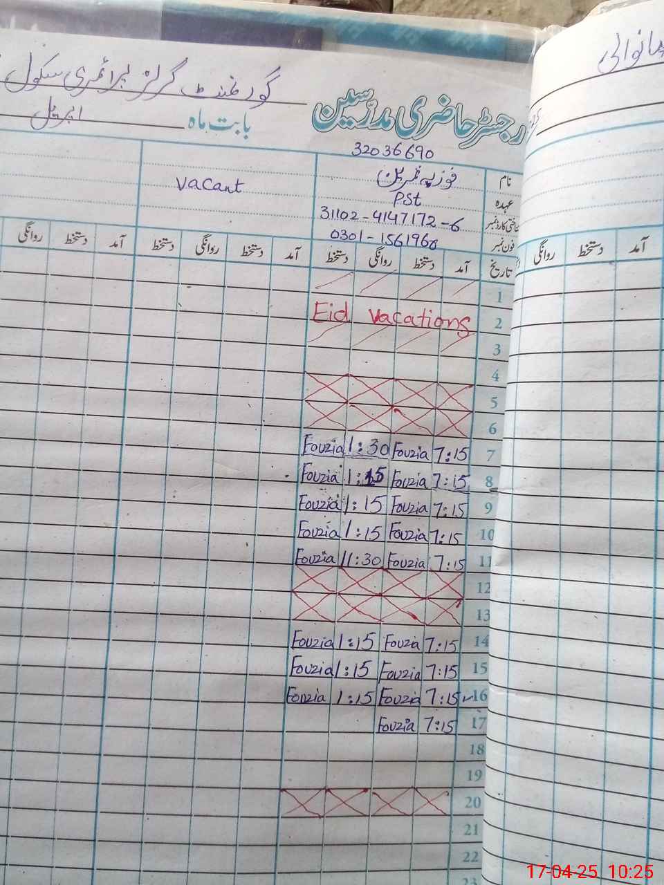 | Name: Fo**** Sa**** Designation: (School Headmaster's/Headmistress's) PST Phone/Cell Number: 03**** |
