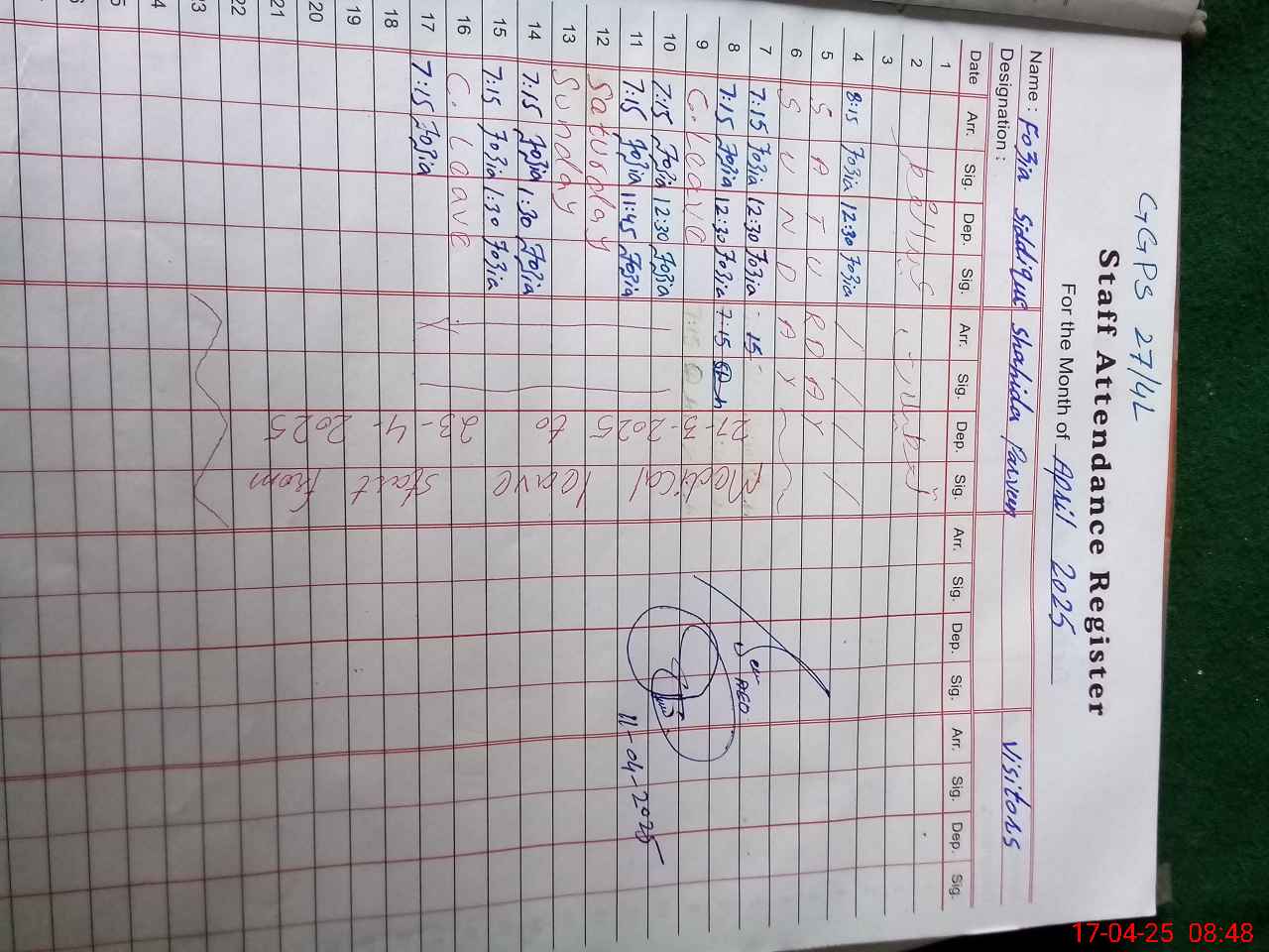| Sr.No. | Visit Date | Designation | ||