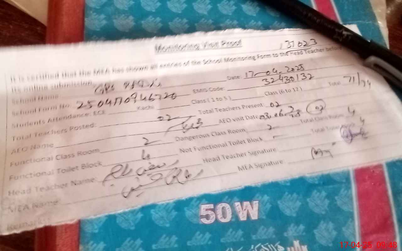 | Certified that this School was Inspected by the Undersigned MEA/DMO Today and the Information Stated Above is as Per Record. | |||||