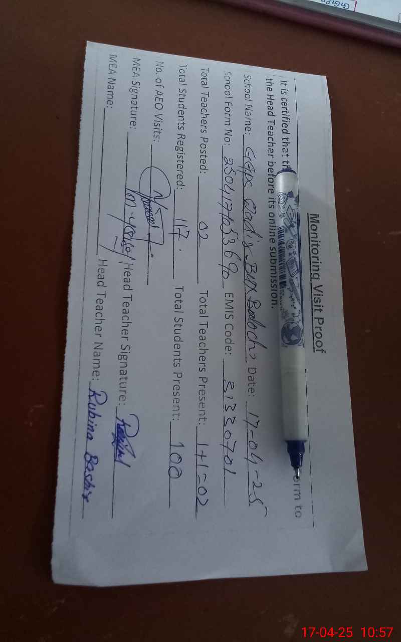 | EMIS Code: 31330701 | Name of School: GGPS QADIR BUX BALOCH | |||
