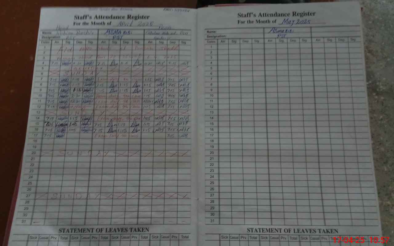 | 31**** | As**** | PST | Regular | 0 | 0 | 0 | 0 | 0 | 0 | 0 | 0 | 0 | Exam Duty |
