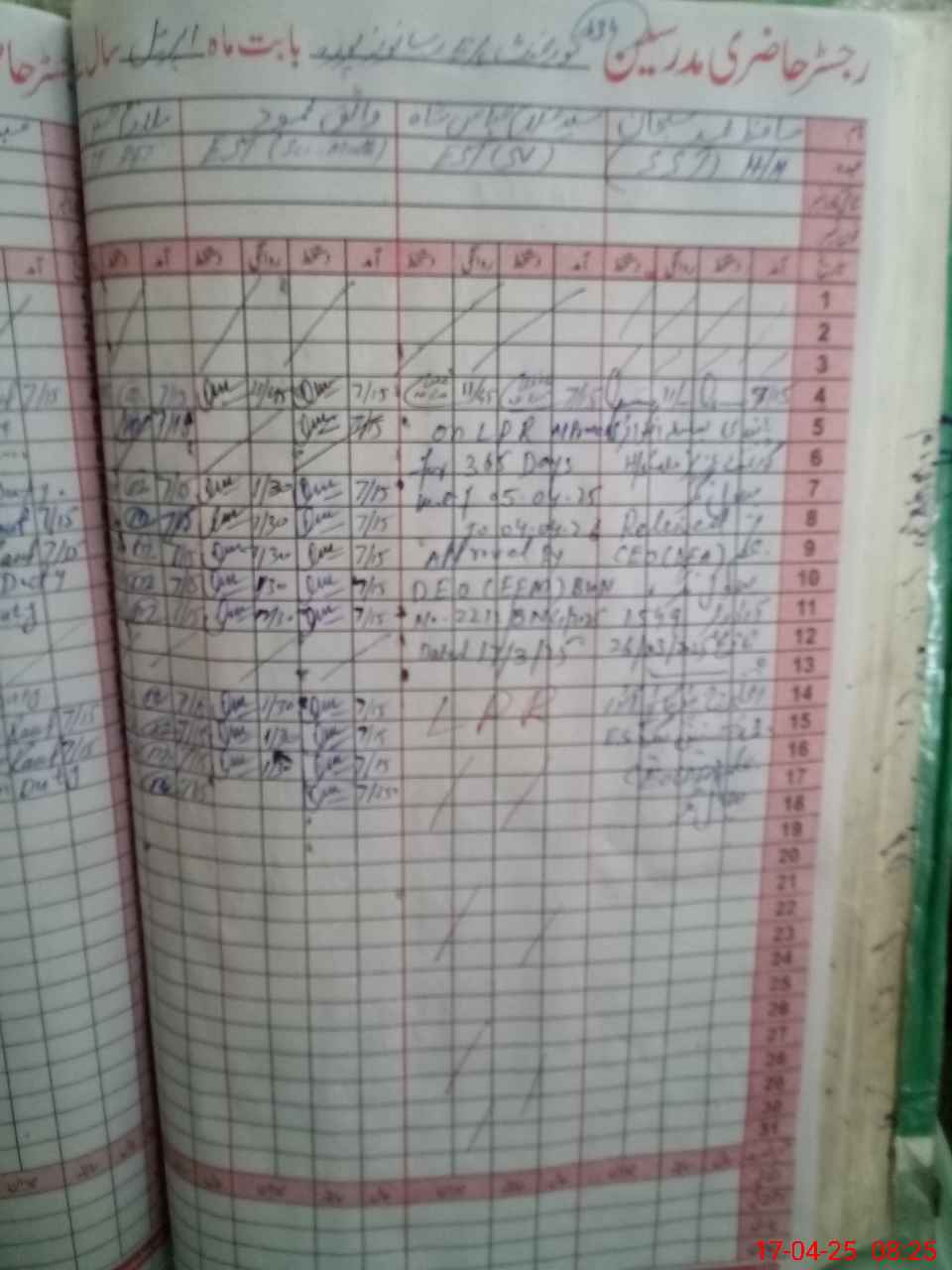 | 31**** | Mu**** Ha**** Ba**** | Regular | 0 | 28 | 0 | 0 | 0 | 0 | 0 | 0 | 0 | Exam Duty | |