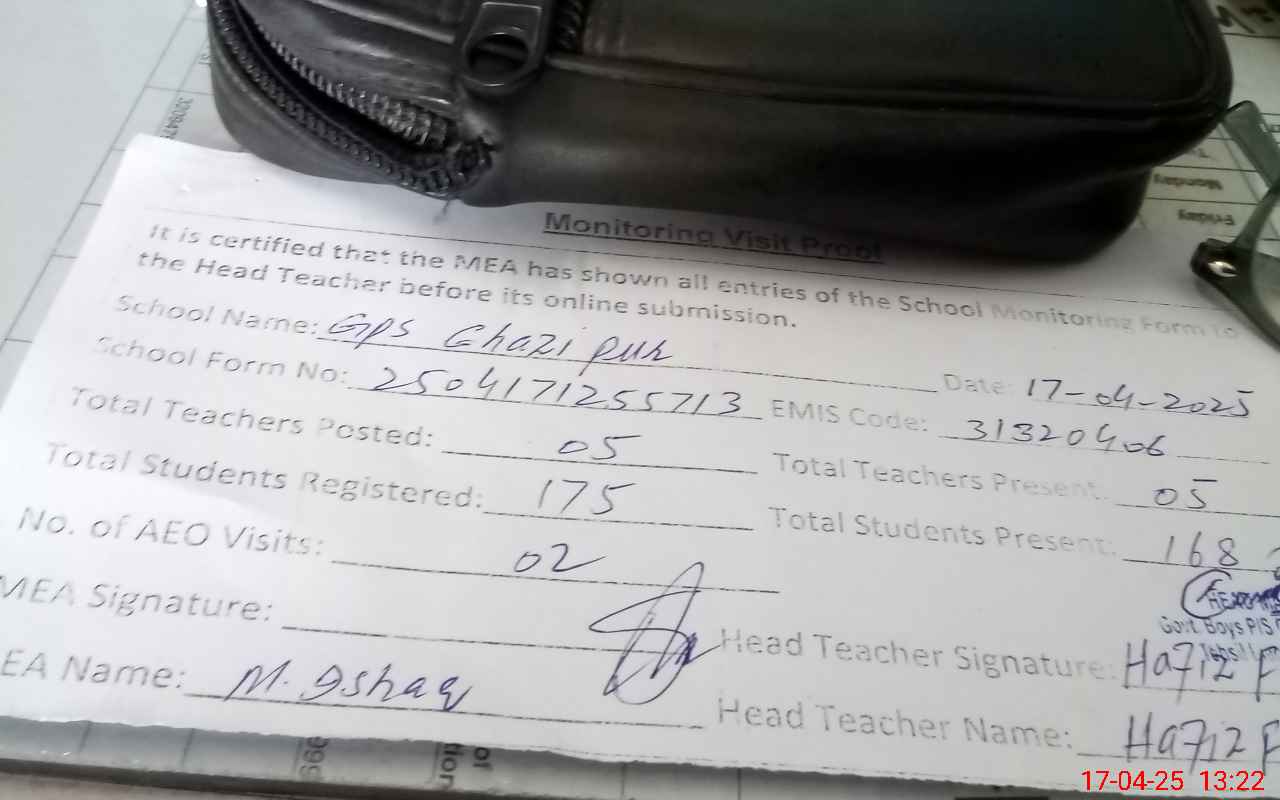 | EMIS Code: 31320406 | Name of School: GPS GHAZI PUR | |||