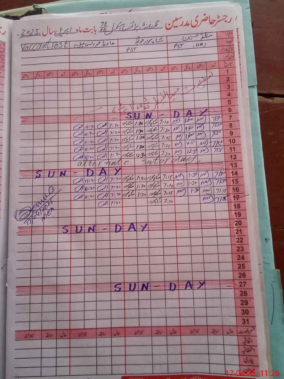 | Name: MU**** HU**** Designation: (School Headmaster's/Headmistress's) PST Phone/Cell Number: 03**** |