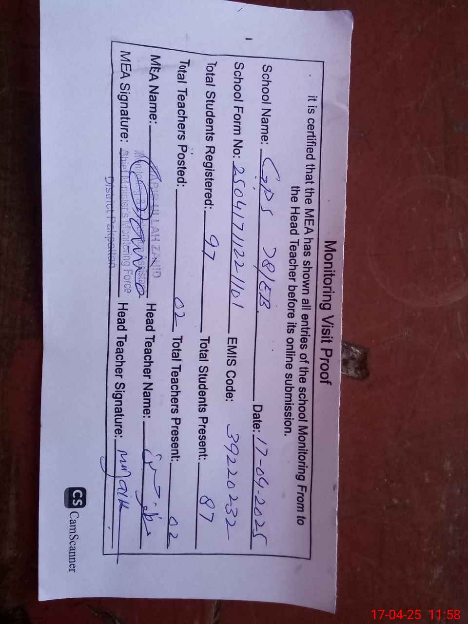 | EMIS Code: 39220232 | Name of School: GPS 78 EB ARIF WALA | |||