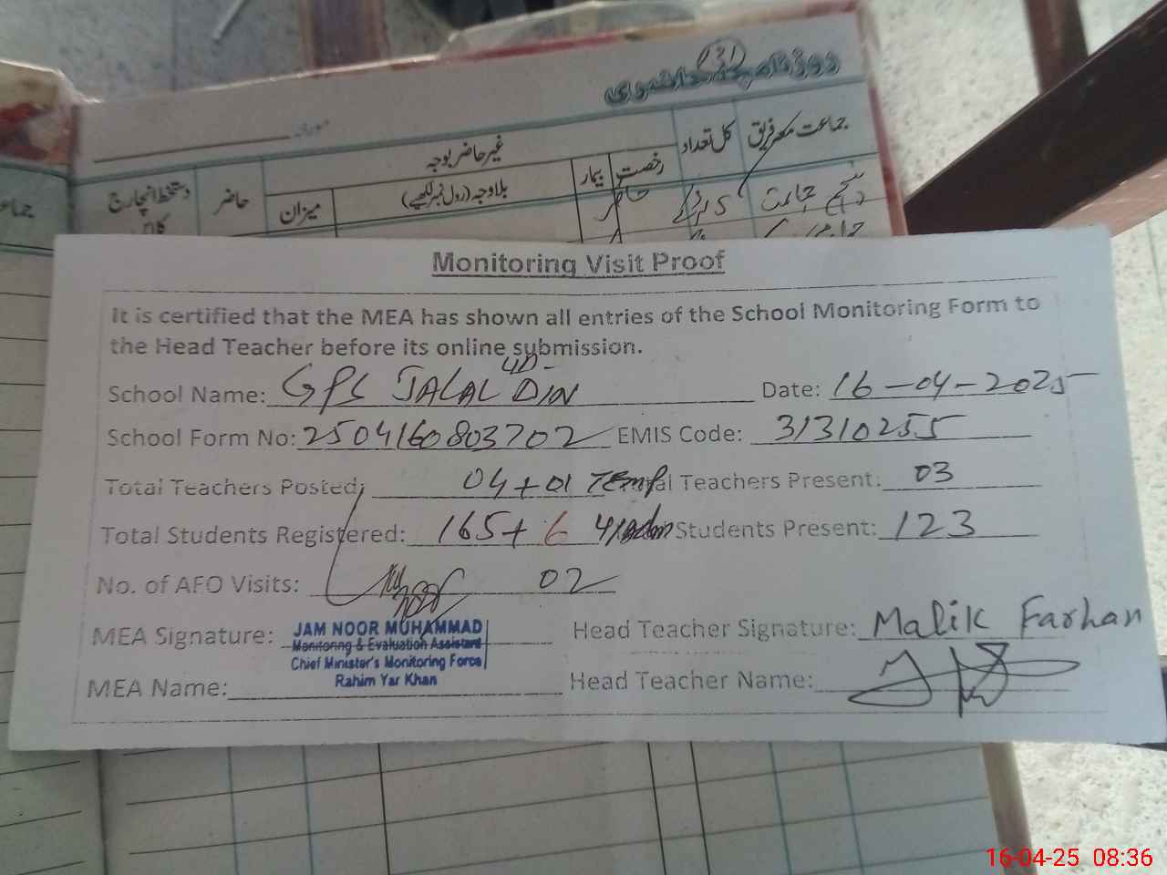 | EMIS Code: 31310255 | Name of School: GPS JALAL-UD-DIN | |||