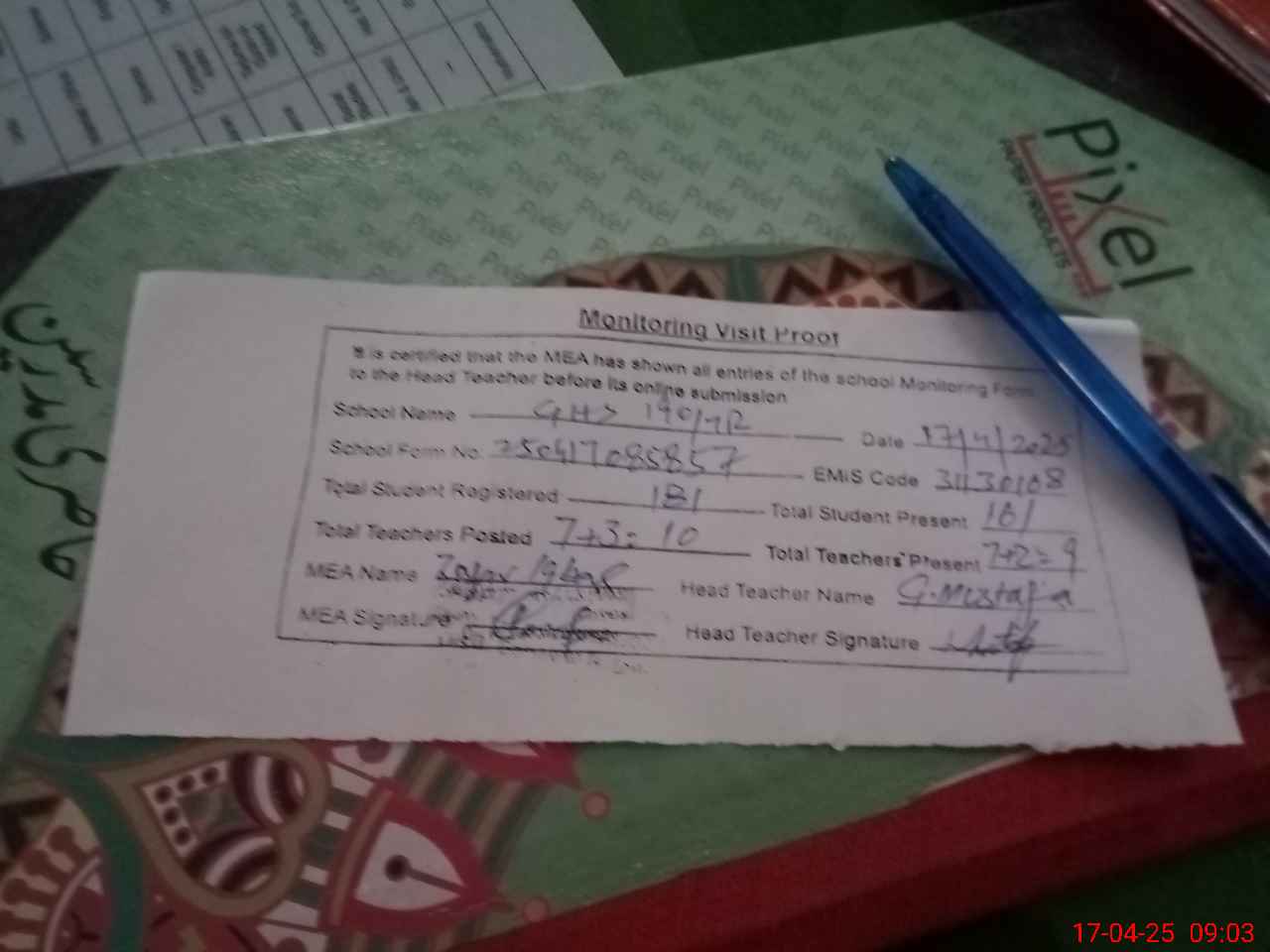 | EMIS Code: 31130108 | Name of School: GHS CHAK NO.190/7-R | |||