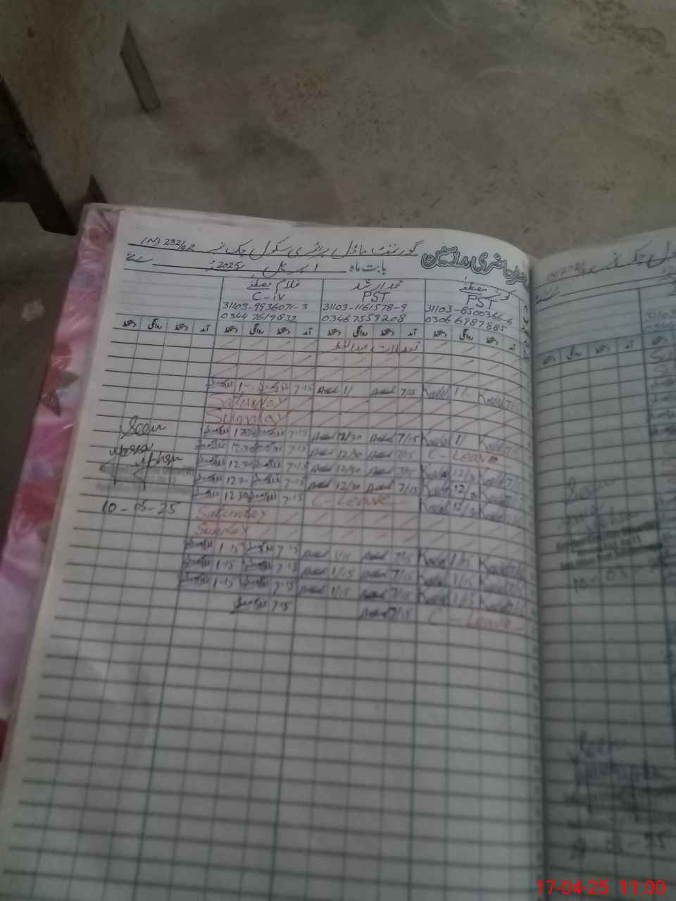 | CNIC | Full Name | Designation | R/C | Absence During Last Calender Month |