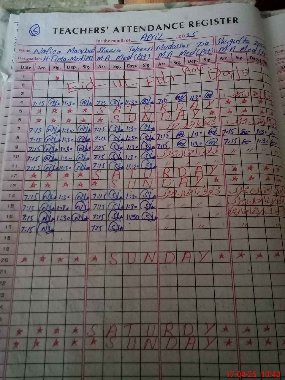 | 35**** | Sh**** Za**** | PST | Regular | 0 | 0 | 0 | 0 | 0 | 0 | 0 | 0 | 0 | Exam Duty |