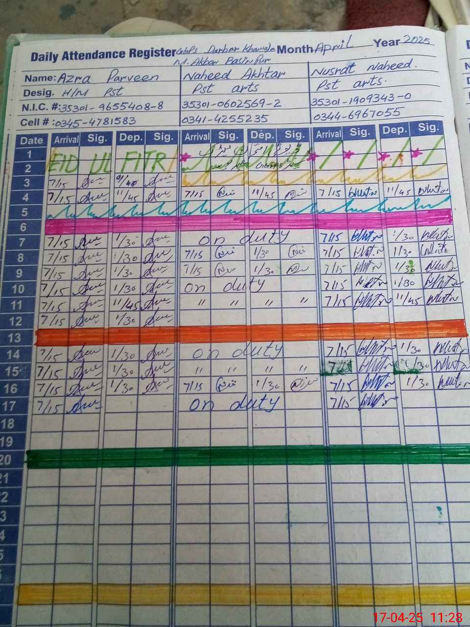 | 35**** | Na**** Ak**** | PST | Regular | 0 | 0 | 0 | 0 | 0 | 0 | 0 | 0 | 0 | Exam Duty |