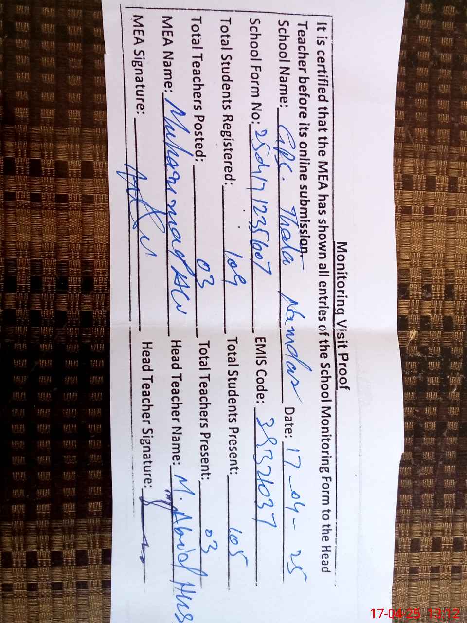 | EMIS Code: 39321037 | Name of School: GPS THATHA NAAM DAR | |||