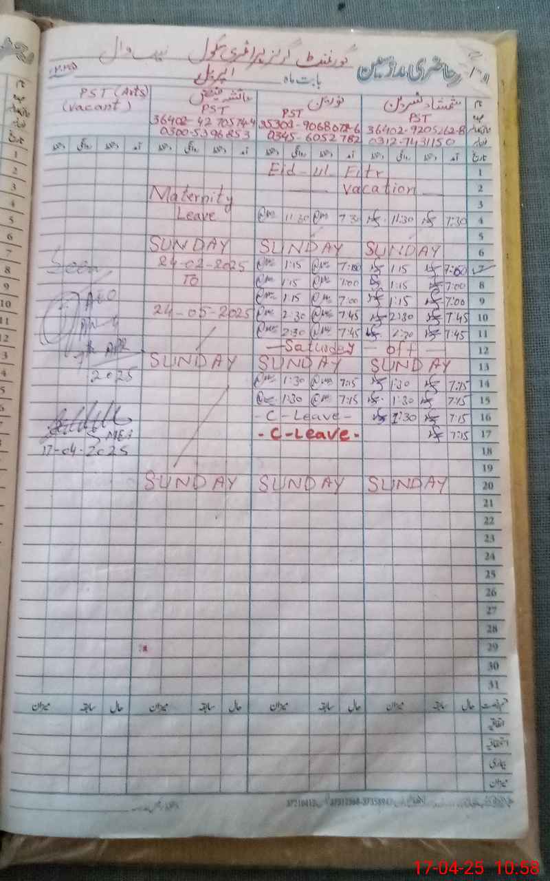 | 36**** | Ay**** Fa**** | PST | Regular | 31 | 0 | 0 | 31 | 0 | 0 | 0 | 0 | 0 | Maternity |