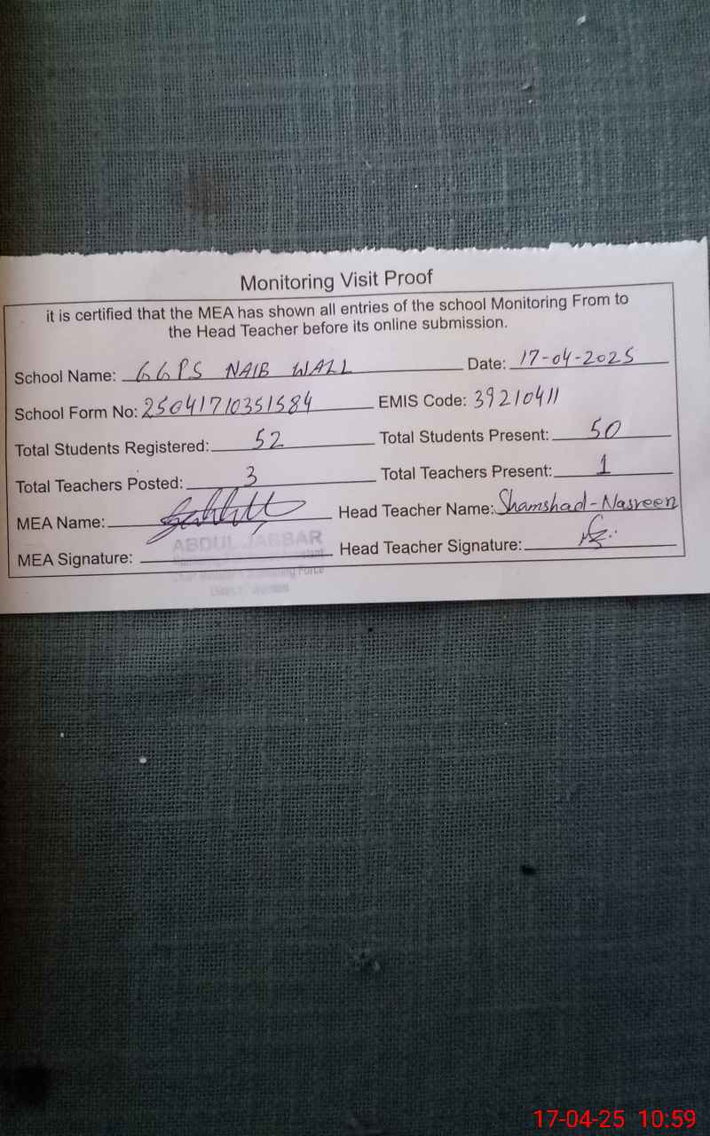 | EMIS Code: 39210411 | Name of School: GGPS NAIB WALL | |||