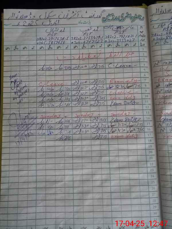| 38**** | Aa**** Ha**** | PST | Temporary | 0 | 0 | 0 | 0 | 0 | 0 | 0 | 0 | 0 | Exam Duty |