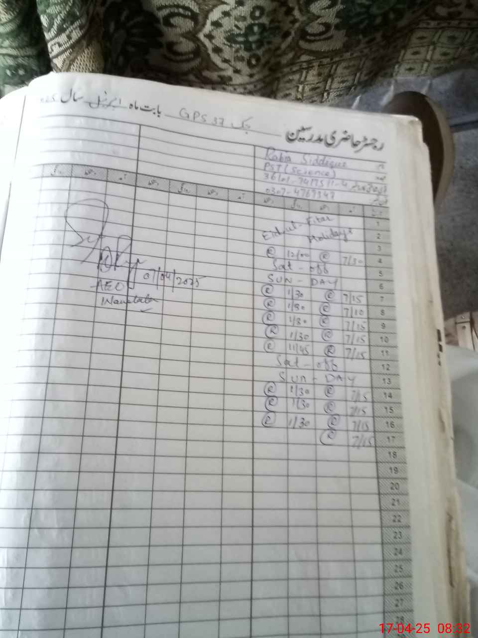 | Name: uz**** As**** Designation: (School Headmaster's/Headmistress's) Pst Phone/Cell Number: 03**** |