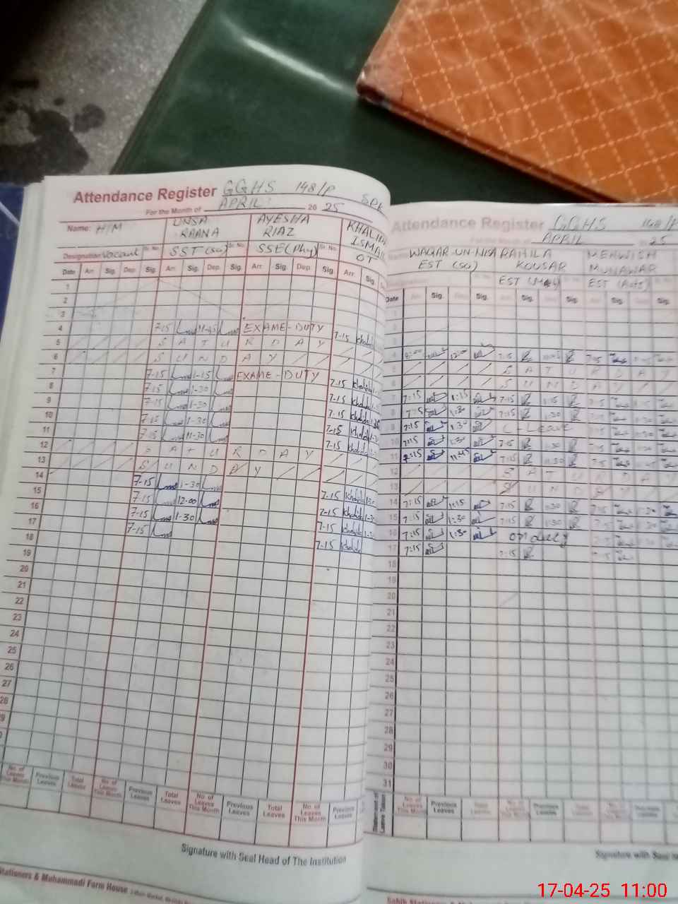 | 31**** | Ay**** Ri**** | SSE | Contract | 0 | 0 | 0 | 0 | 0 | 0 | 0 | 0 | 0 | Exam Duty |