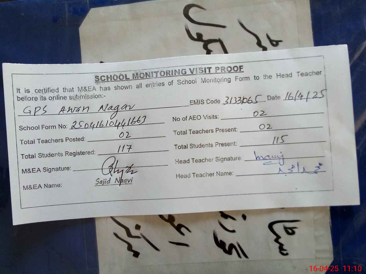 | EMIS Code: 31331065 | Name of School: GPS AWAN NAGAR | |||