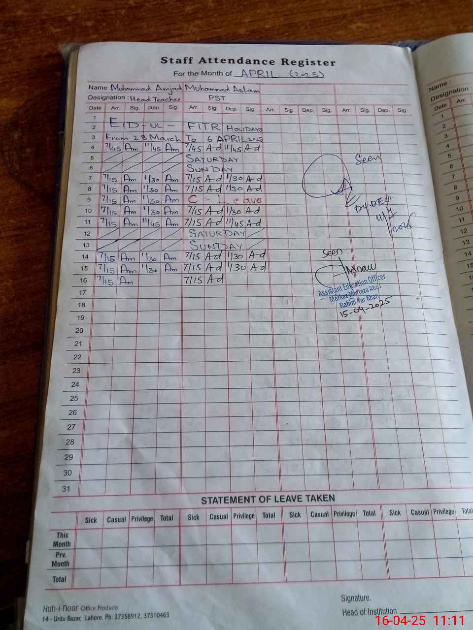 | Name: MU**** AM**** Designation: (School Headmaster's/Headmistress's) PST/PTC/JV Phone/Cell Number: 03**** |