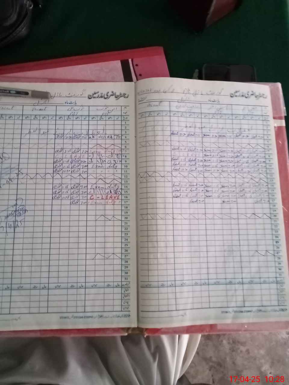 | Leave | Duty | Absent | Maternity | Medical | Ex- Pak |