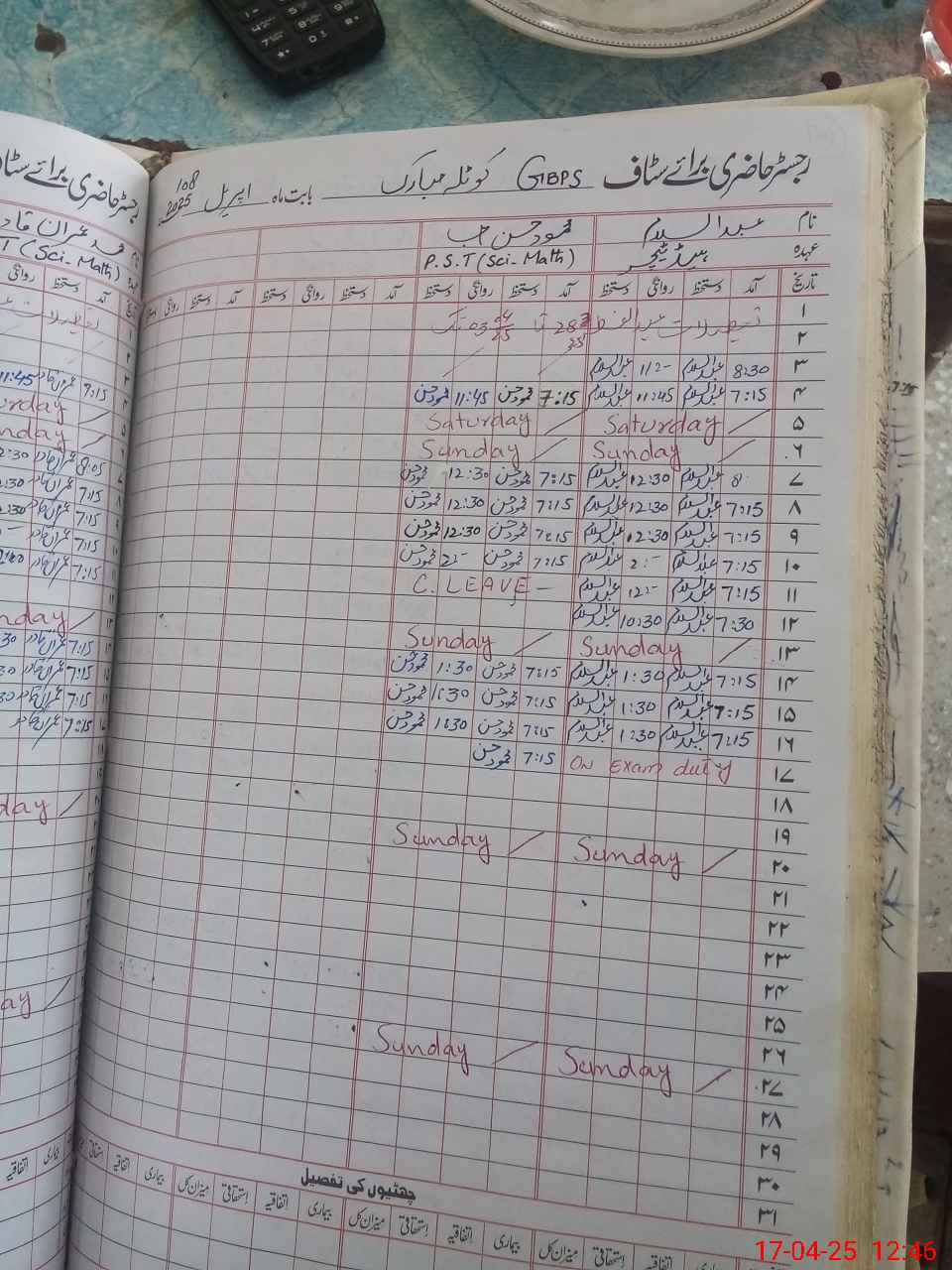 | 31**** | Ab**** Sa**** | PST | Regular | 0 | 26 | 0 | 0 | 0 | 0 | 0 | 0 | 0 | Exam Duty |