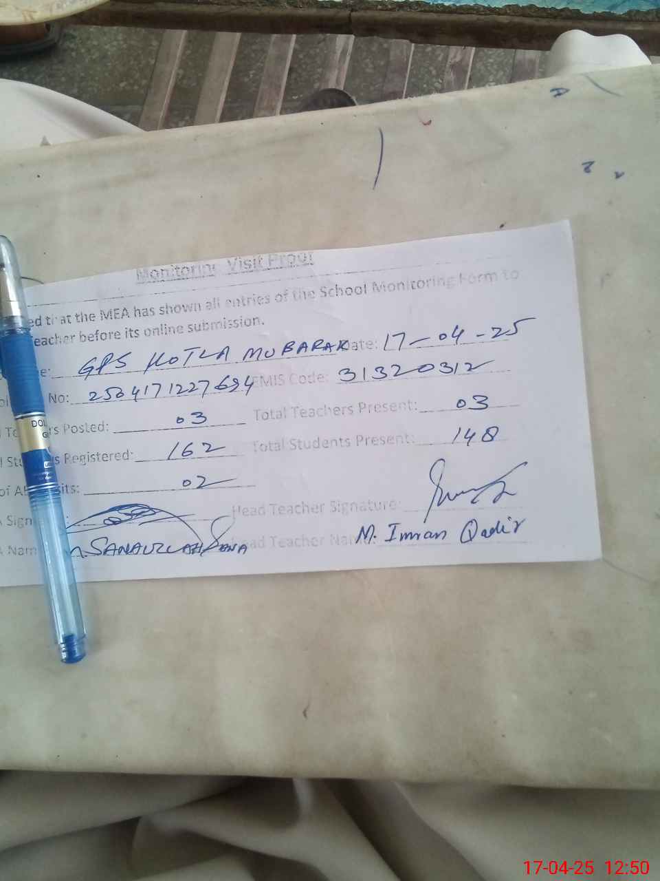 | EMIS Code: 31320312 | Name of School: GPS KOTLA MUBARAK | |||