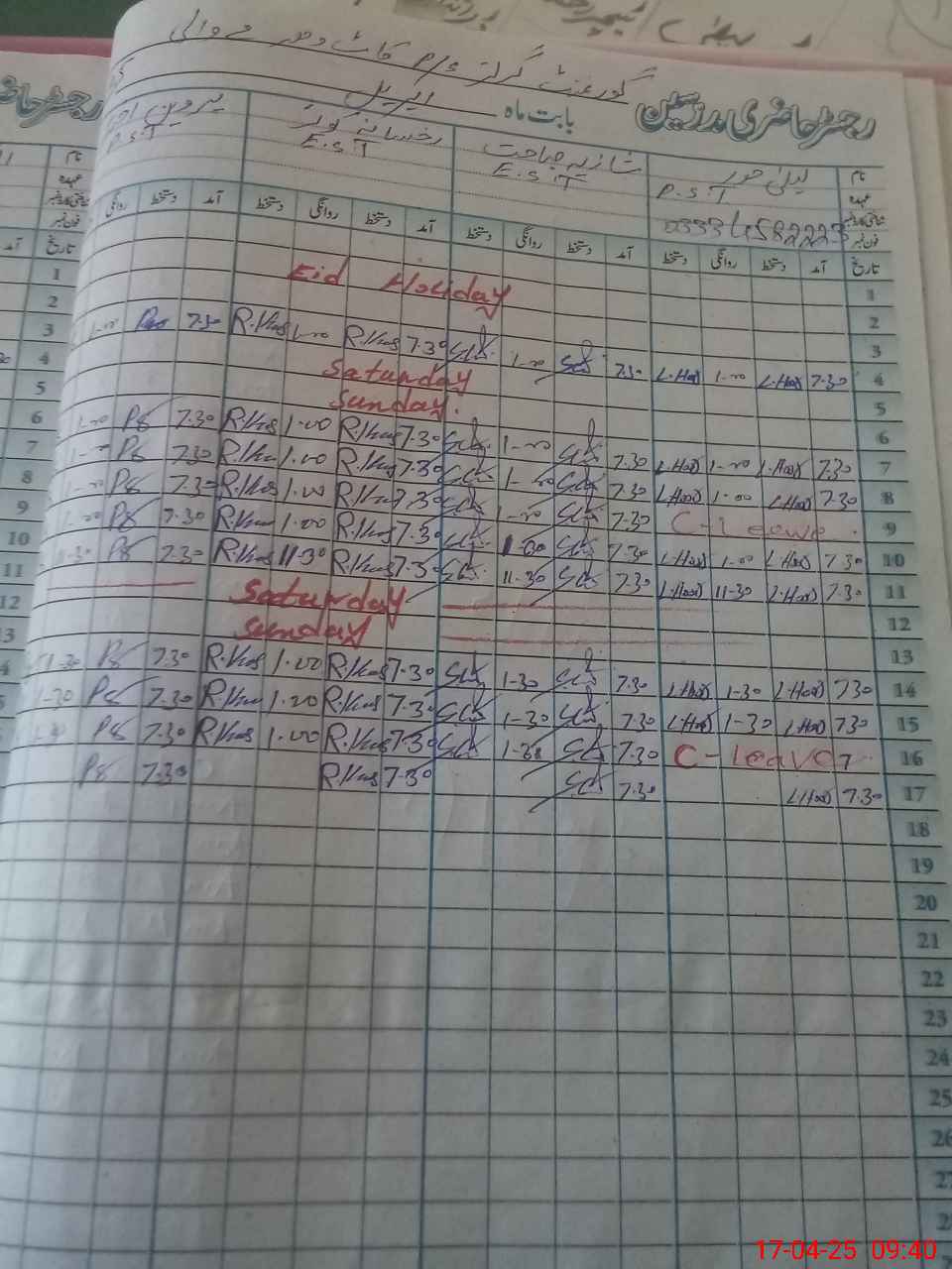 | CNIC | Full Name | Designation | R/C | Absence During Last Calender Month |