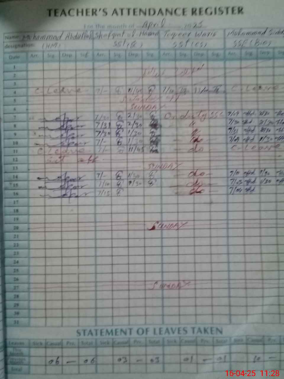 | 36**** | Ab**** Re**** | EST | Regular | 0 | 0 | 0 | 0 | 0 | 0 | 0 | 0 | 0 | Absent (Un-Authorized) |