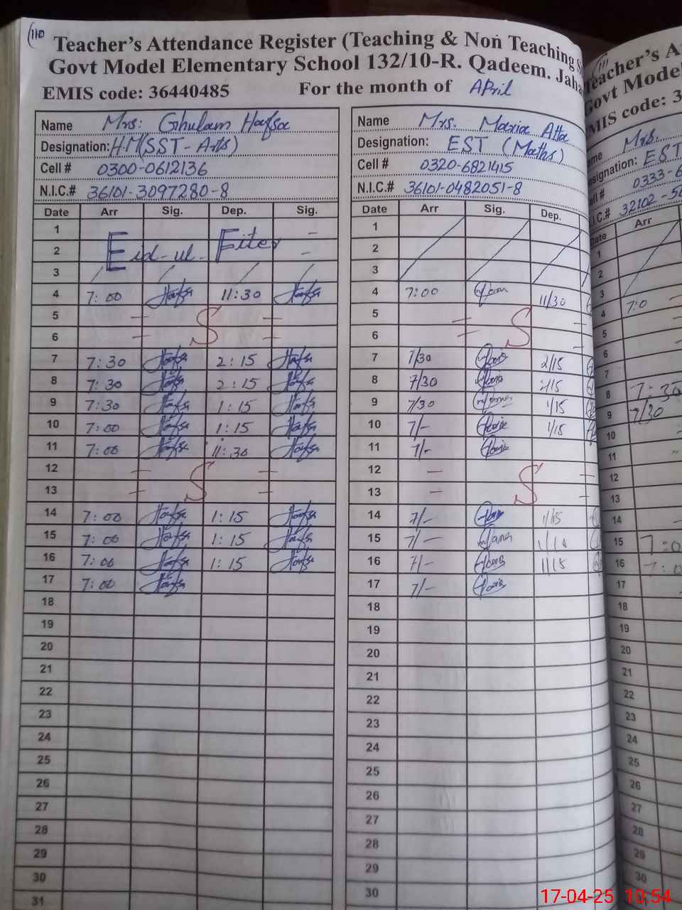 | EMIS Code: 36440485 | Name of School: GMES 132/10-R QADEEM, JAHANIAN | |||