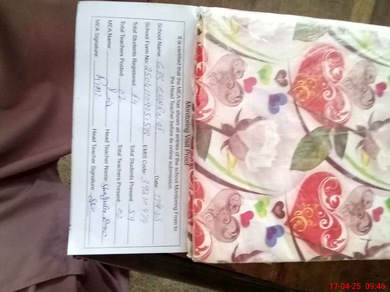 | Certified that this School was Inspected by the Undersigned MEA/DMO Today and the Information Stated Above is as Per Record. | |||||