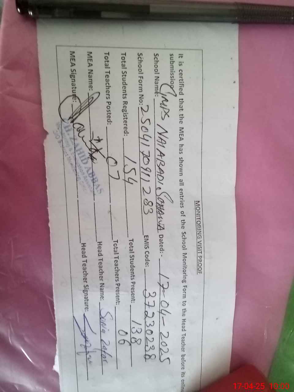 | EMIS Code: 37230238 | Name of School: GMPS NAI ABADI SOHAWA | |||