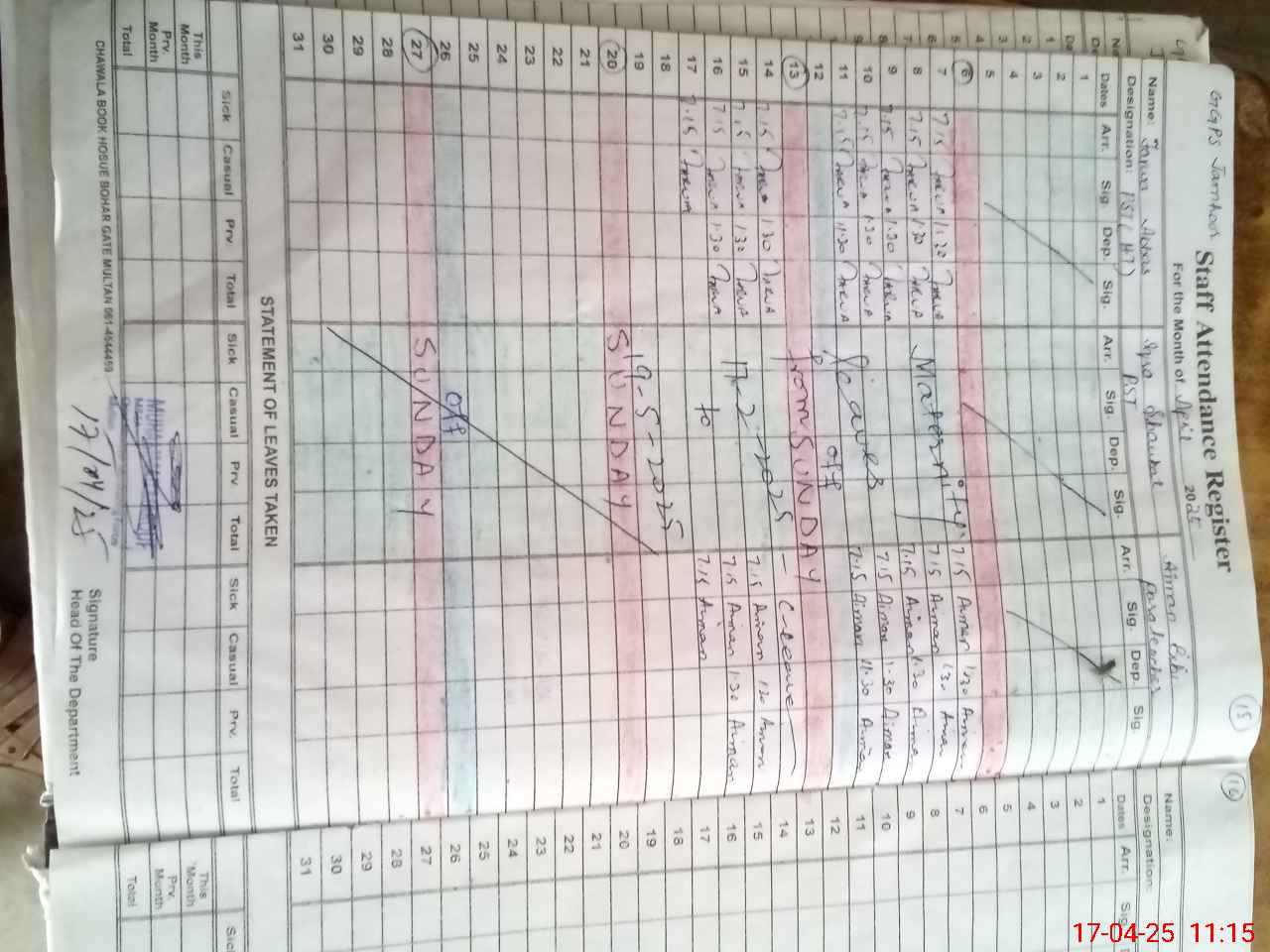 | 36**** | Iq**** Sh**** | PST | Regular | 0 | 0 | 0 | 0 | 0 | 0 | 0 | 0 | 0 | Maternity |