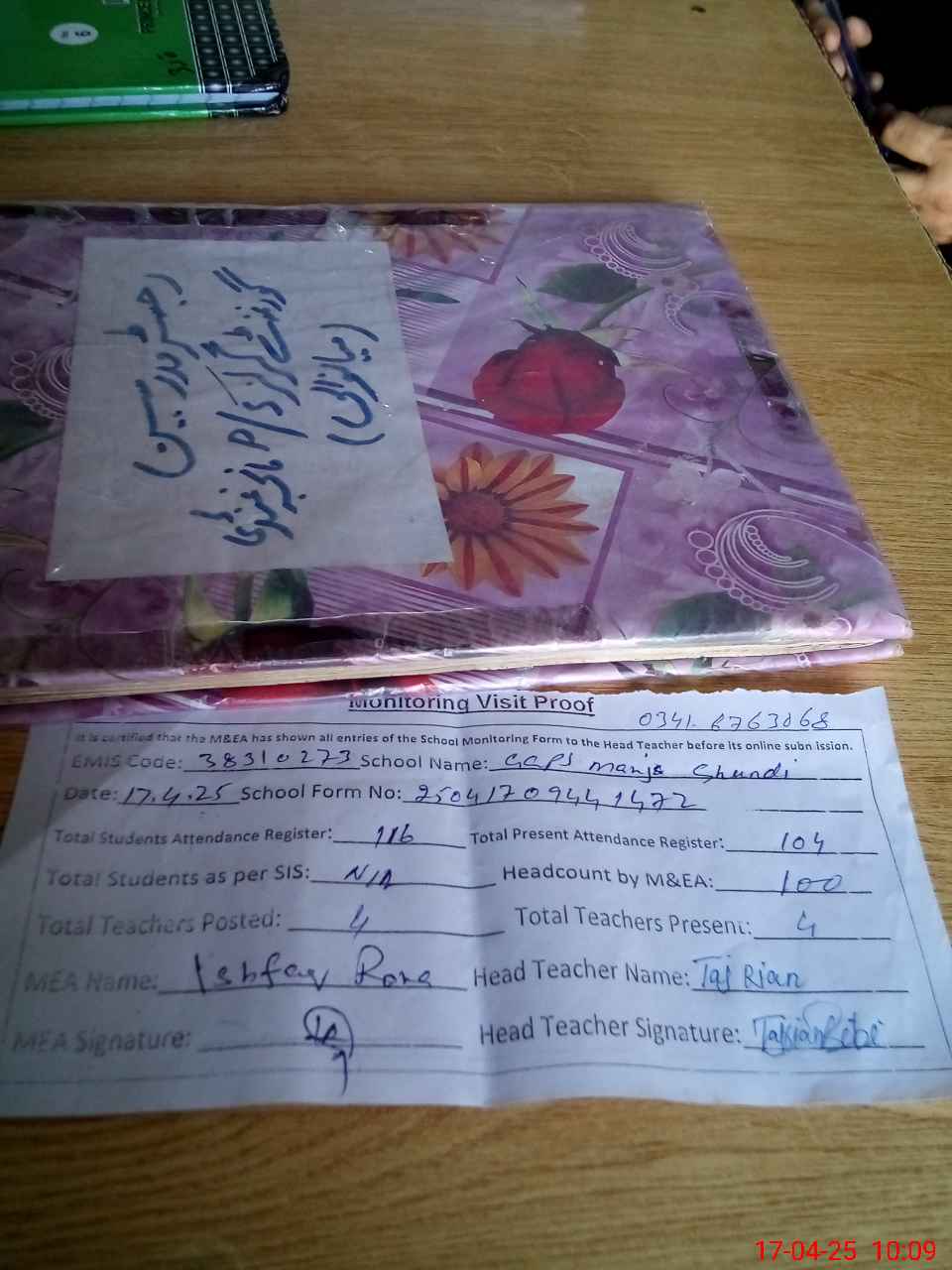 | EMIS Code: 38310273 | Name of School: GGPS MANJA GHUNDI | |||