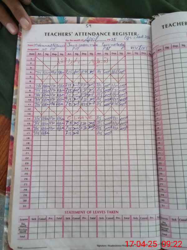 | Name: MU**** RI**** Designation: (School Headmaster's/Headmistress's) PST Phone/Cell Number: 03**** |