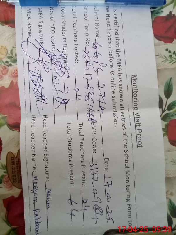 | EMIS Code: 31320984 | Name of School: GGPS CHAK 27/A | |||