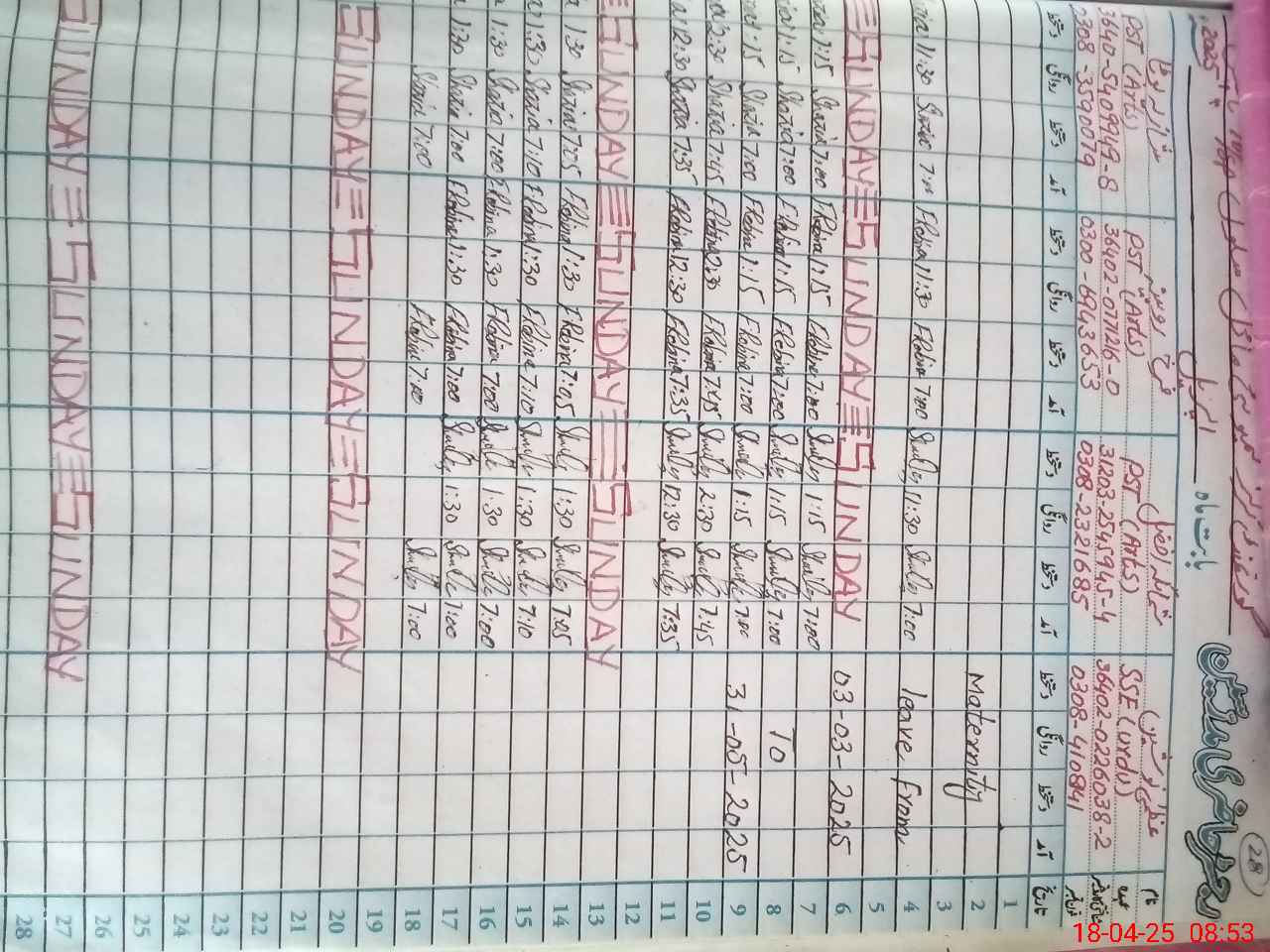 | 36**** | Uz**** No**** | Contract | 18 | 0 | 0 | 18 | 0 | 0 | 0 | 0 | 0 | Maternity | |